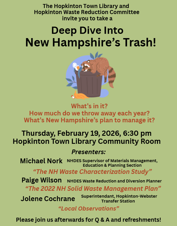 The next webinar in the NH Office of Planning and Development (OPD) Planning Lunches at Noon (PLAN) Monthly Webinar Series “The ABCs of TRCs” is from noon to 1 pm, Thursday, Feb. 19.